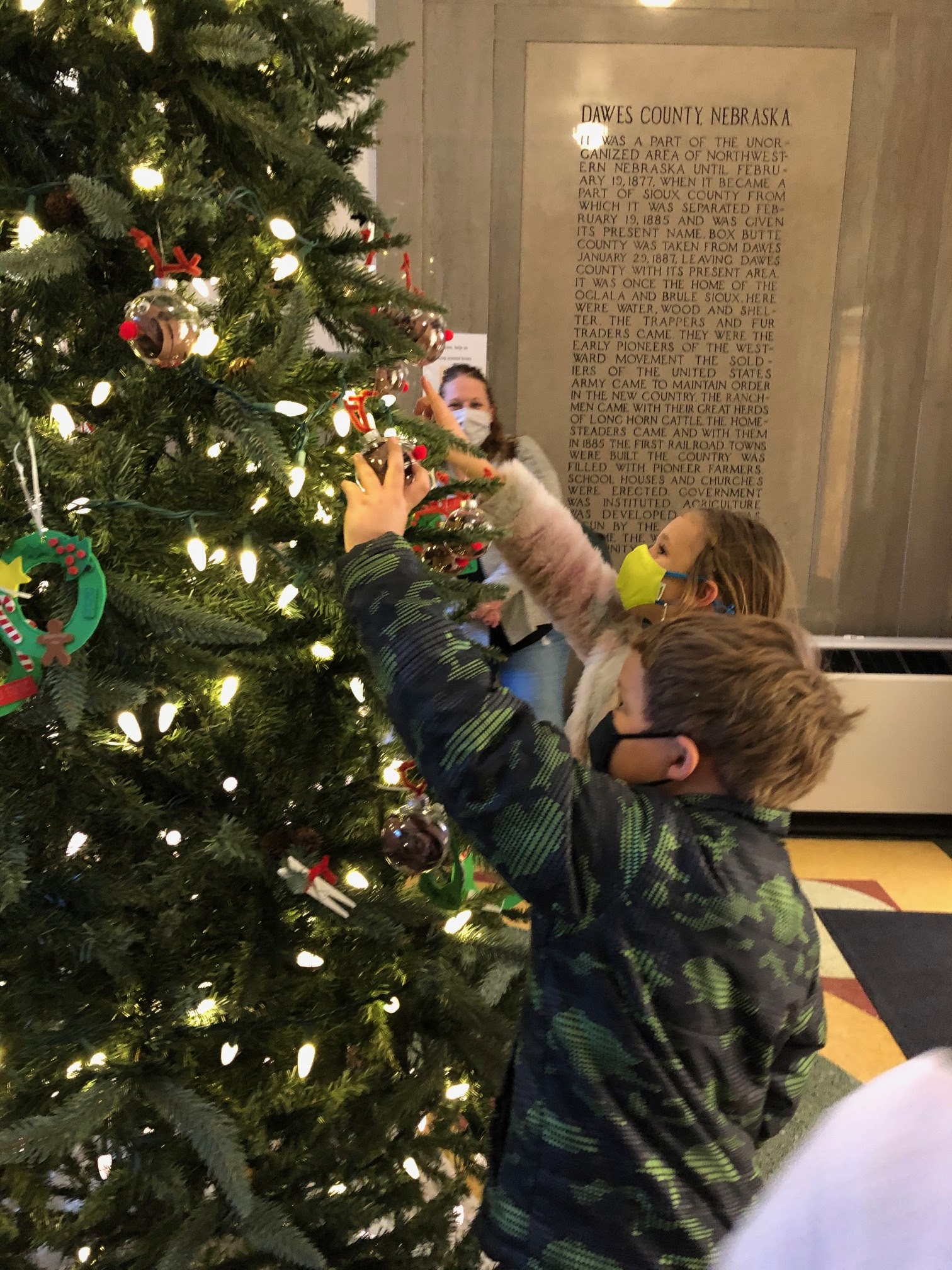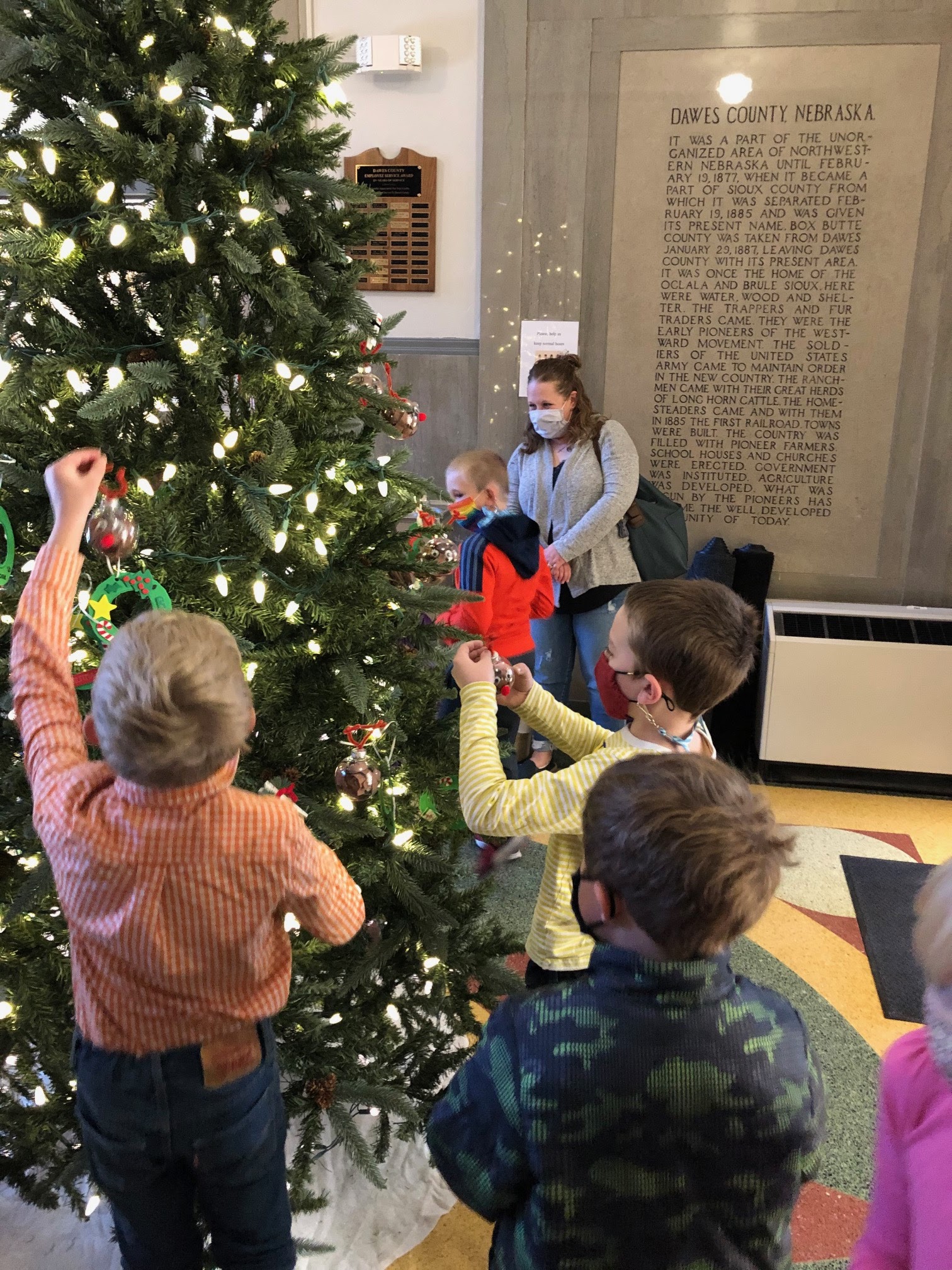 Chadron Primary students decorated the courthouse Christmas tree and had a wonderful time spreading cheer!  The weather was fabulous and students enjoyed the walk to the courthouse.  We would also like to thank the courthouse employees for the candy canes!