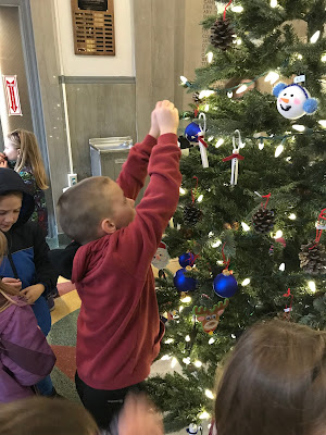Dawes County Courthouse has a fancy looking Christmas Tree thanks to Chadron Primary students. Courthouse employees invited students down to show off their homemade ornaments and decorate the courthouse. Children were able to take a walking field trip down to Main Street for the event and the students enjoyed their time and were given a candy cane for the walk back to school. Thank you to the Courthouse and to all of the staff who helped get our students there and back safely. When you have a chance, stop by to enjoy the scenery.